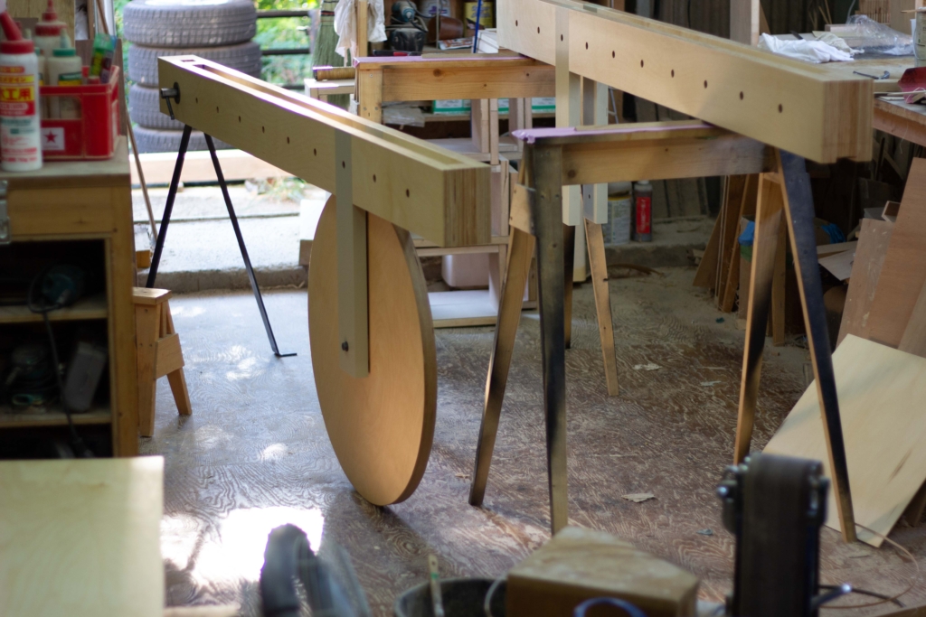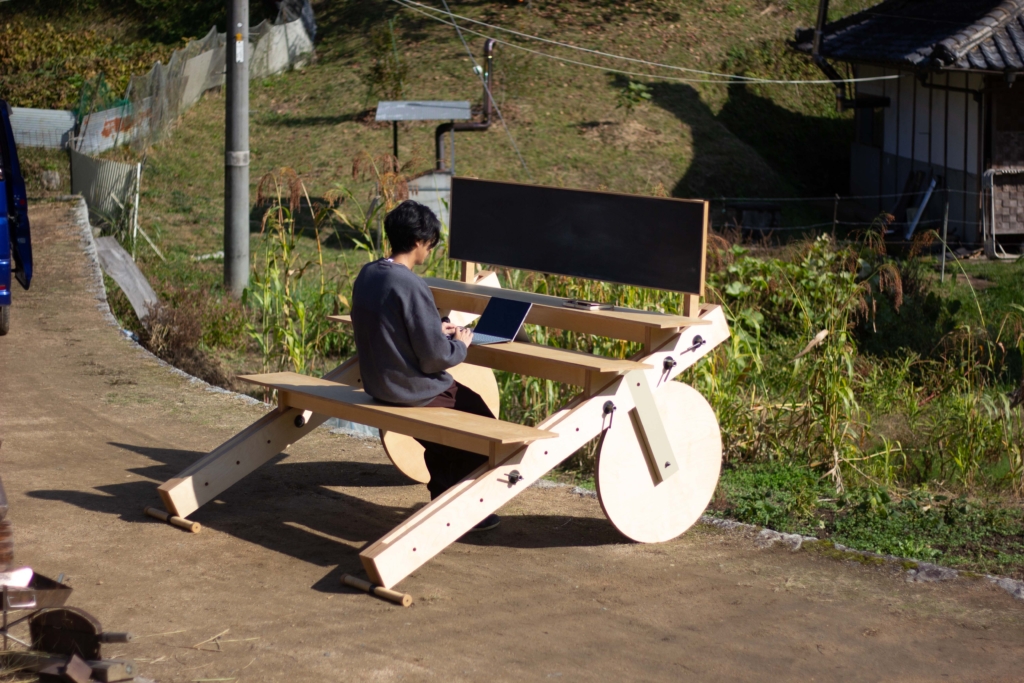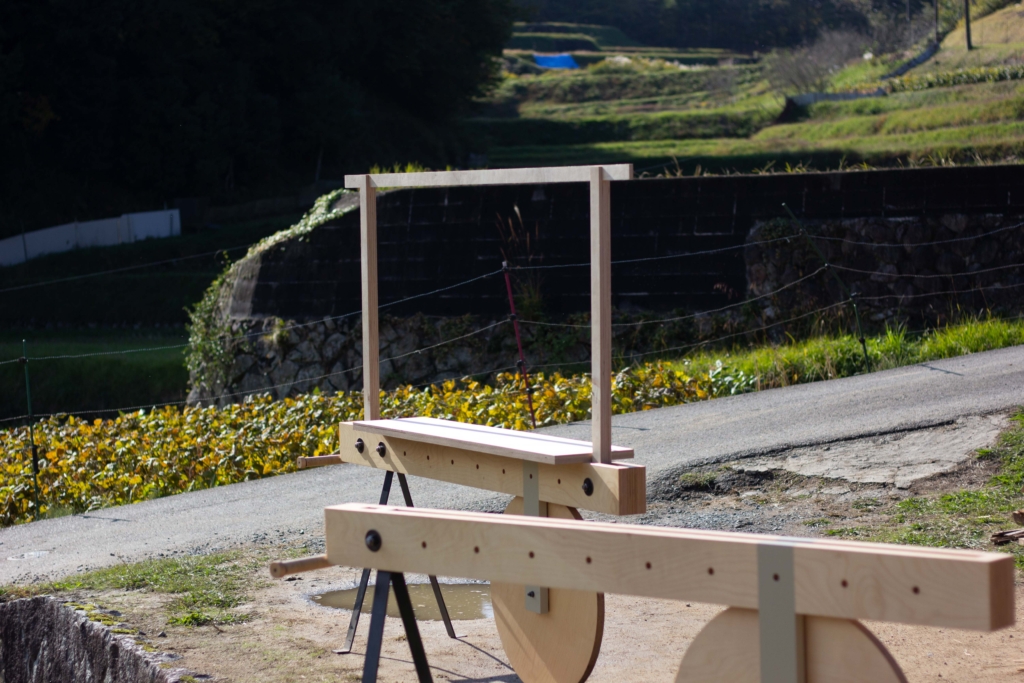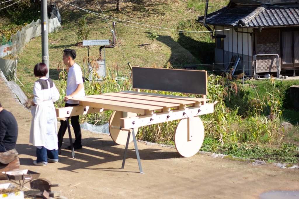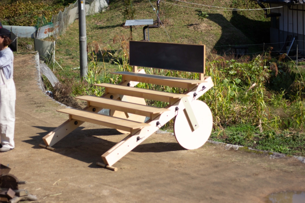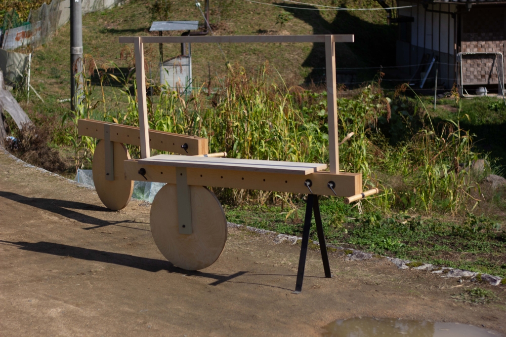 上山地区棚田の什器 Posted on:2021-11-112024-06-15 岡山県上山地区の為に製作したイベント用の什器 上山地区の商品棚として オフィススペースとして イベント机として 屋台として 設計はアトリエナカウテの丸山さんと 上山地区棚田の斜面地でも移動できるように設計した。 道具を使わないボルト固定により気軽にカスタマイズ可能 製作はBespoke wood worksの黒岩さん 持ち手には籐を巻いた。