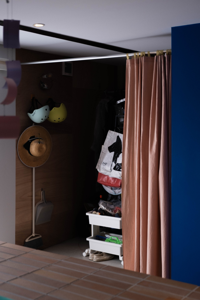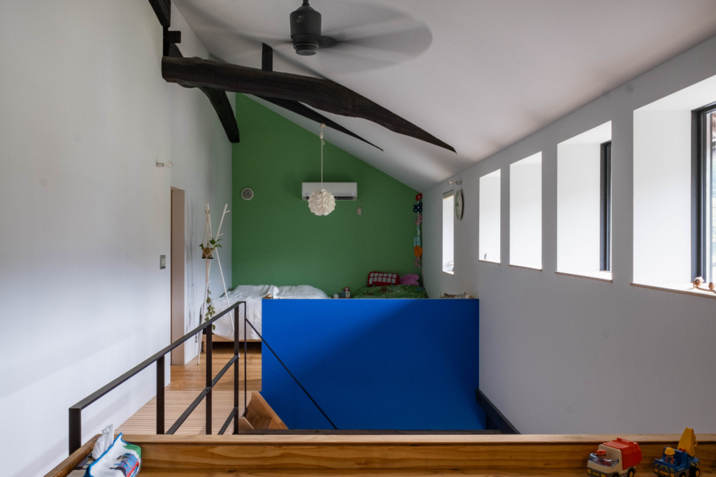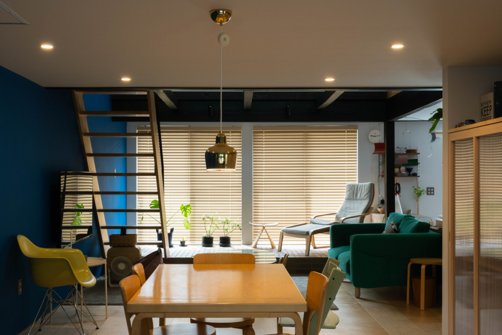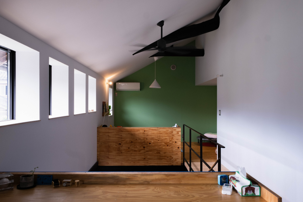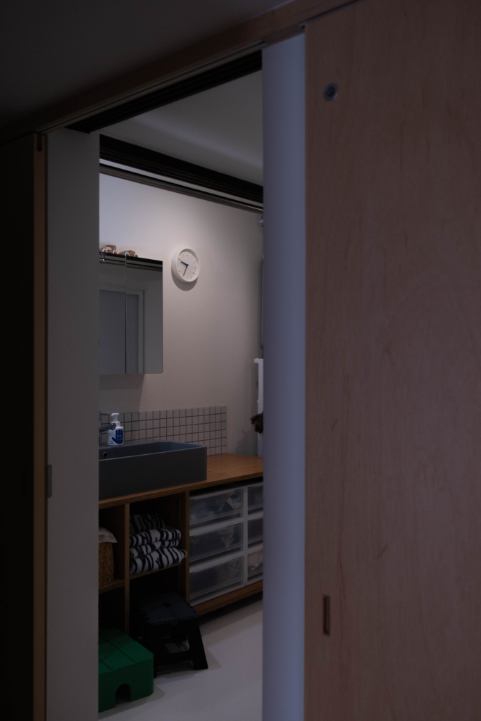 朝来市古民家の店舗併用住宅 Posted on:2024-05-252024-08-05 店舗正面 住宅の玄関 玄関を入るとレンガBOXが玄関とリビングをゆるやかに間仕切ります。 玄関土間収納 レンガ床部分は植物など置けるよう、窓辺に外部に近い居場所を作りました。 吹抜けは既存の梁などを現しに。 奥からキッチン、ダイニング、リビングとそれぞれ天井高を変えています。 ダイニングはアアルトがデザインした椅子、机、照明。その素材に合わせて床はバーチ合板。 店舗のブルーに塗装された壁が住宅にもつづきます。 2階吹抜けルーバー床から 2階はワンルーム、吹抜けを介して間仕切ります。 2階 2階 1階脱衣室 店舗部分 店舗は以前から使っていた厨房機器を並べています。 イートインスペース 用途:店舗併用住宅場所:兵庫県朝来市構造:木造2階建て/改修設計監理:OKK/大西貴之建築計画事務所施工:カインド 改修前店舗 改修前店舗 改修前外観 改修前店舗